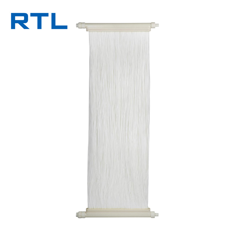 The RTL-b series submerged ultrafiltration membrane module is an ultrafiltration membrane used in external free spaces, suitable for filtering incoming water with poor water quality and high SS. The membrane module relies on the suction effect of the filtration pump to allow the filtered liquid to pass through the membrane holes on the hollow fiber membrane wall and enter the inner cavity from the outside of the membrane fibers. The filtered fluid flows through the water outlet of each membrane module and converges to the outlet of the system. The RTL-b series submerged ultrafiltration membrane components have high filtration accuracy, with a retention rate of 99.9% for 30nm polystyrene microspheres and a microbial purification rate of not less than 99.9%. The pure water flux can reach over 1000L/(m2 · h), and the overall performance has reached the leading level in China.